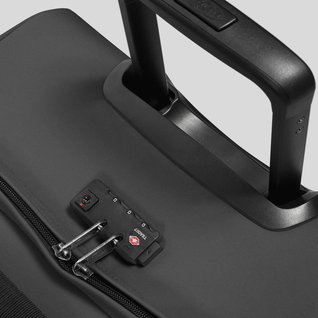 A perfect accessory for a get away, the Eastpak Tranverz Medium Luggage Bag in Sunday Grey can flex it's size to add more or less belongings while storing flat when you get home. A double deck compartment with a zippered closure and compression straps keeps all of your belongings safe along with a front zipped pocket. Choose to carry your bag horizontal or vertically with padded grip handles on the top and side, a telescopic handle makes for easy movement with the wheeling system.